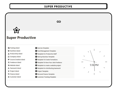 That's why we created the Super Productive Pack: it's not just a set of templates, it's your ally to simplify what's important (your time, your money, your well-being) so you can focus on what really matters.